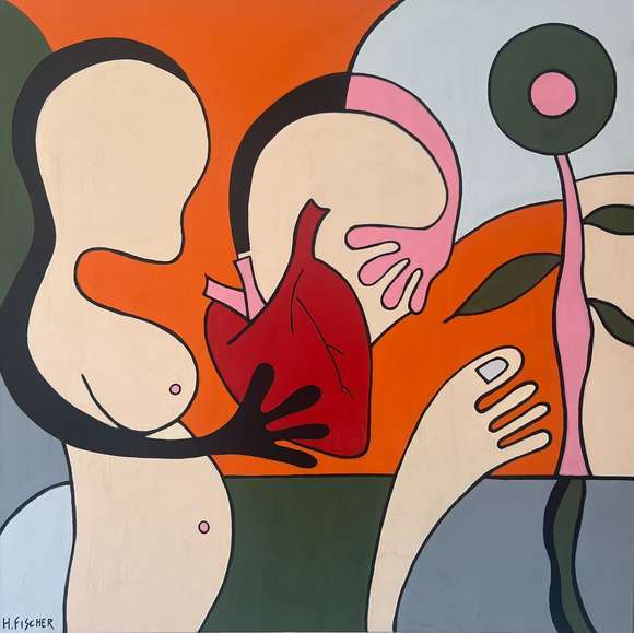Henrique Fischer – A Origem do Amor. Série Origem. Med: 100X100 cm. Acrílica sobre Tela, med: Ass: C.I.E e verso, dat...