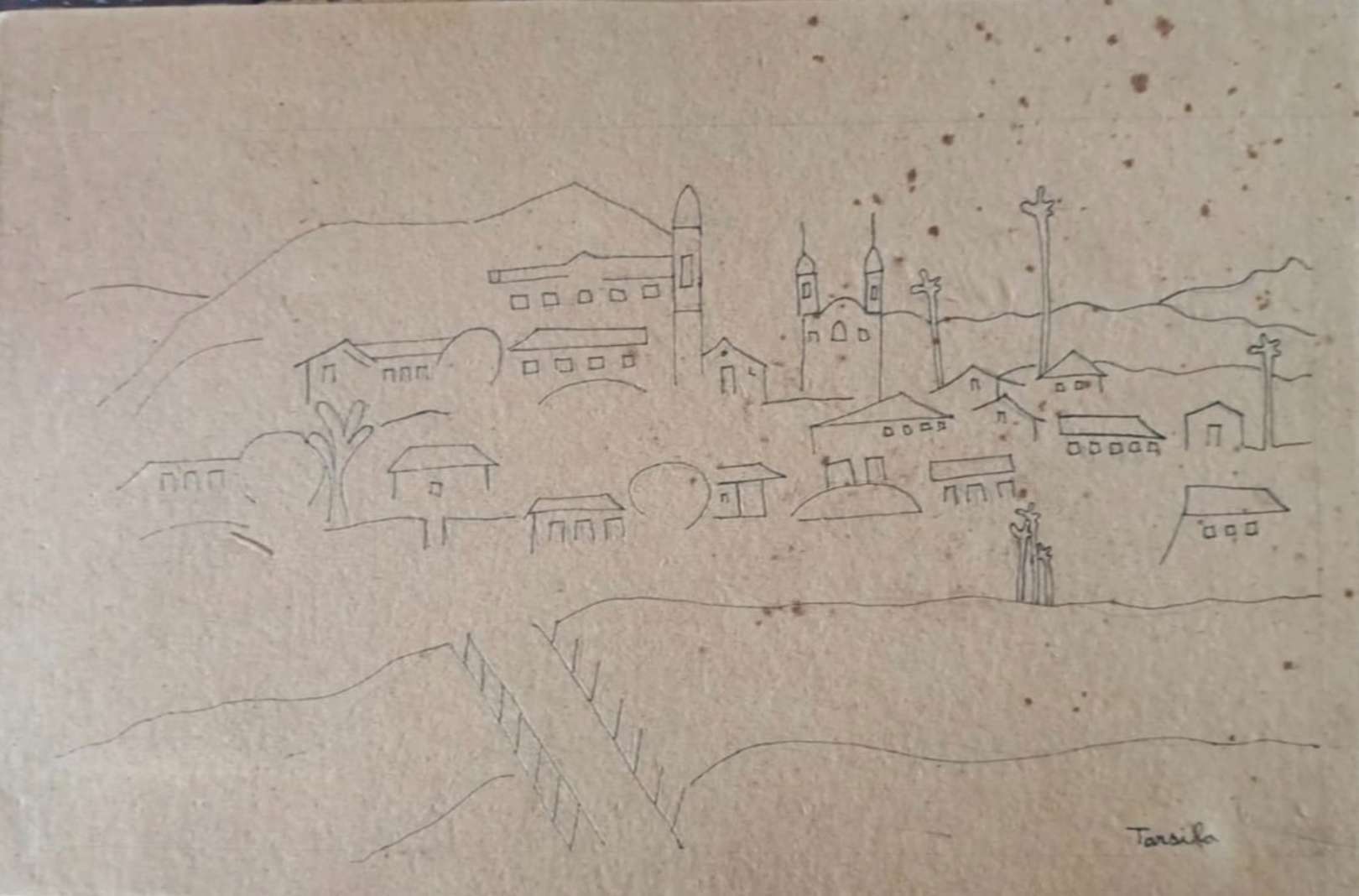 Tarsila do Amaral. Nanquim sobre Cartão, med: 21,5X32,5 cm. Ass: C.I.D. Sem moldura