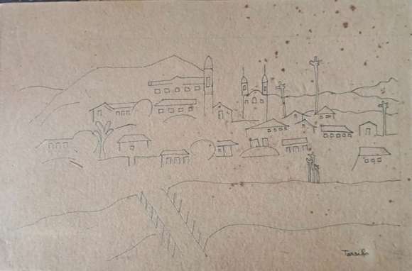 Tarsila do Amaral. Nanquim sobre Cartão, med: 21,5X32,5 cm. Ass: C.I.D. Sem moldura
