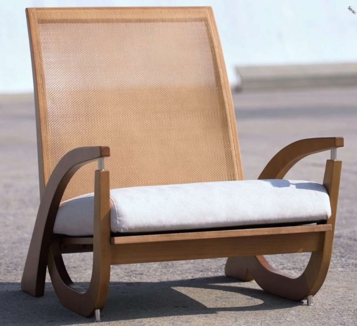 Chaise Rio. Estrutura em Eucalipto Rosa e reforços estruturais em aço. Estofamento em couro sintético preto. Design: ...