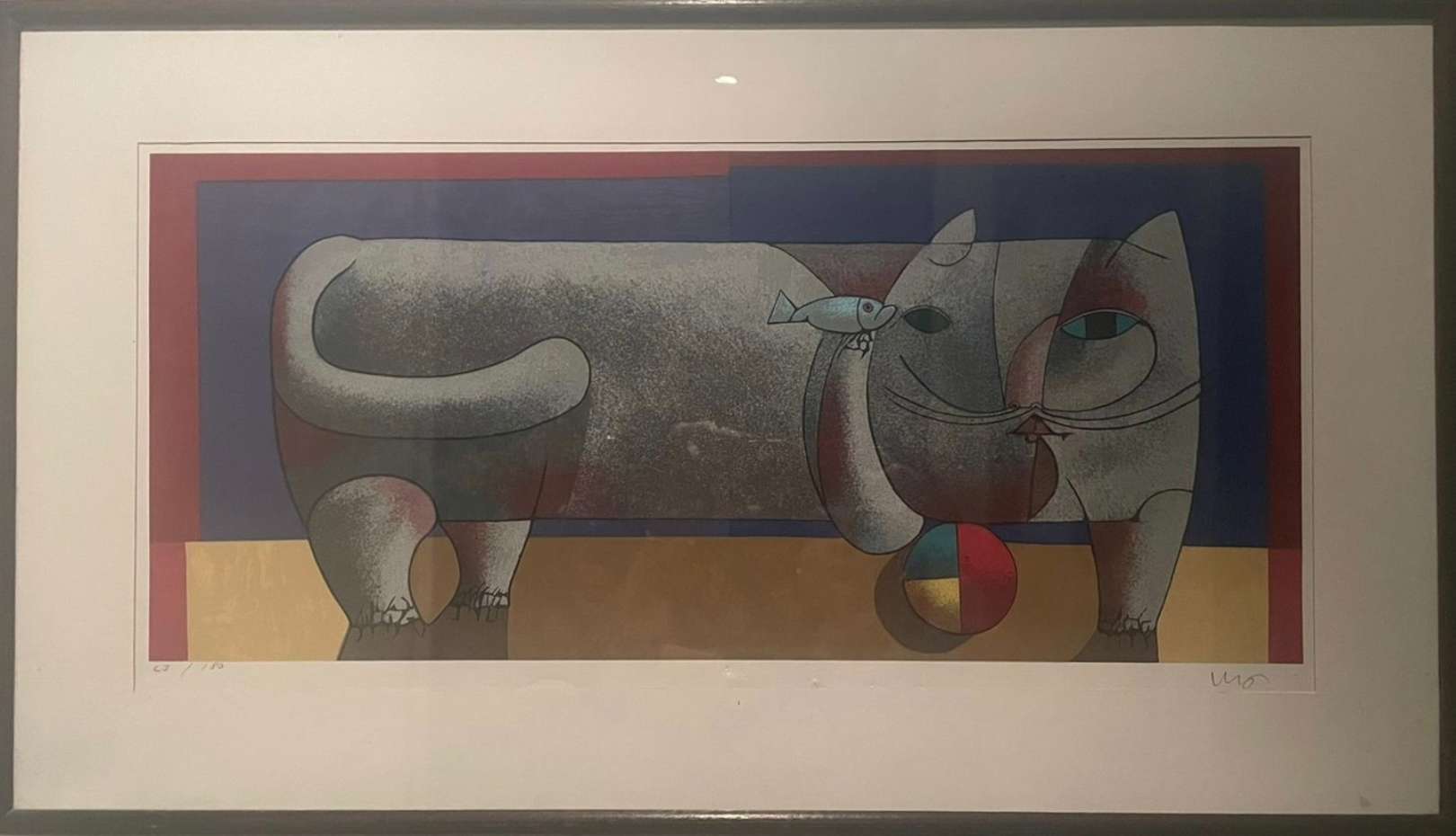 ALDEMIR MARTINS (Ceará, Brasil, 1922 - São Paulo, Brasil, 2006) “Gato Azul com Vaso de Flores” Acrílica sobre tela. A...