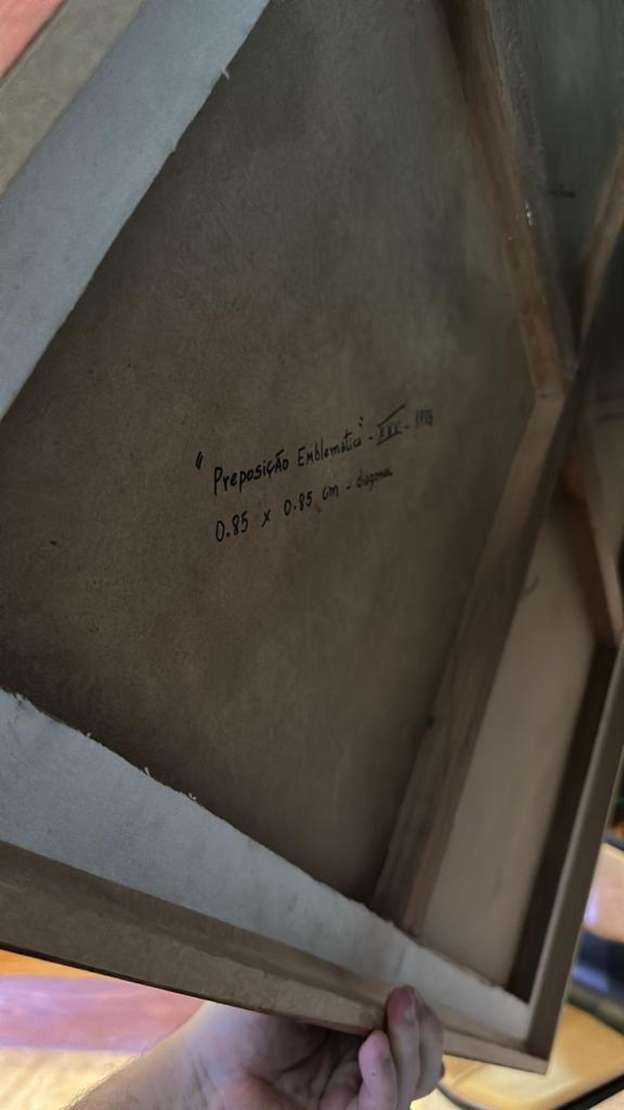 Vinil e colagem encerado sobre tela. Ass: Centro Superior. Datado: 76. Intitulado, assinado, datado e localizado no v...