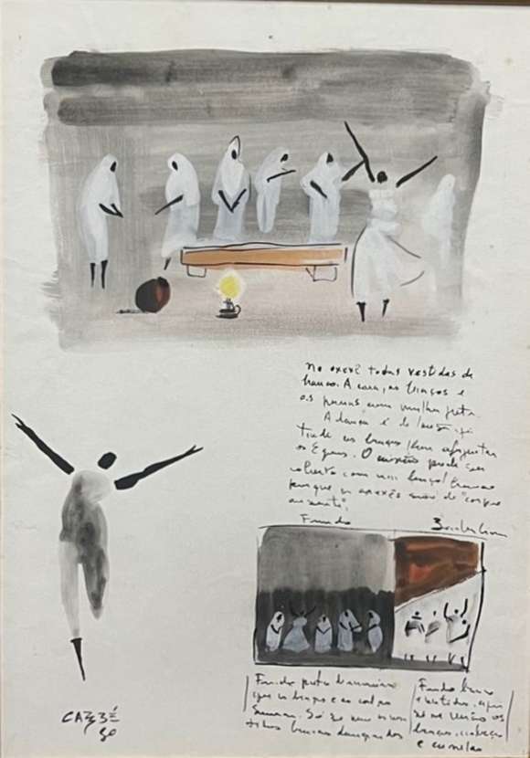 Técnica mista sobre papel. Atribuído. Assinado: Bandeira, C.I.D, datado de 1965. Med 30x42 cm. Sem moldura.