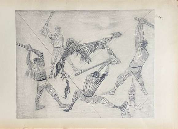 Litografia. Atribuído. Assinada: Portinari e datada: C.I.D. :57. Sem moldura. Med: 37x54 cm.