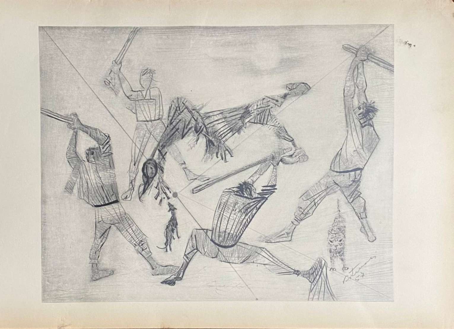 Técnica mista sobre papel. Atribuído. Assinado: Bandeira, C.I.D, datado de 1965. Med 30x42 cm. Sem moldura.